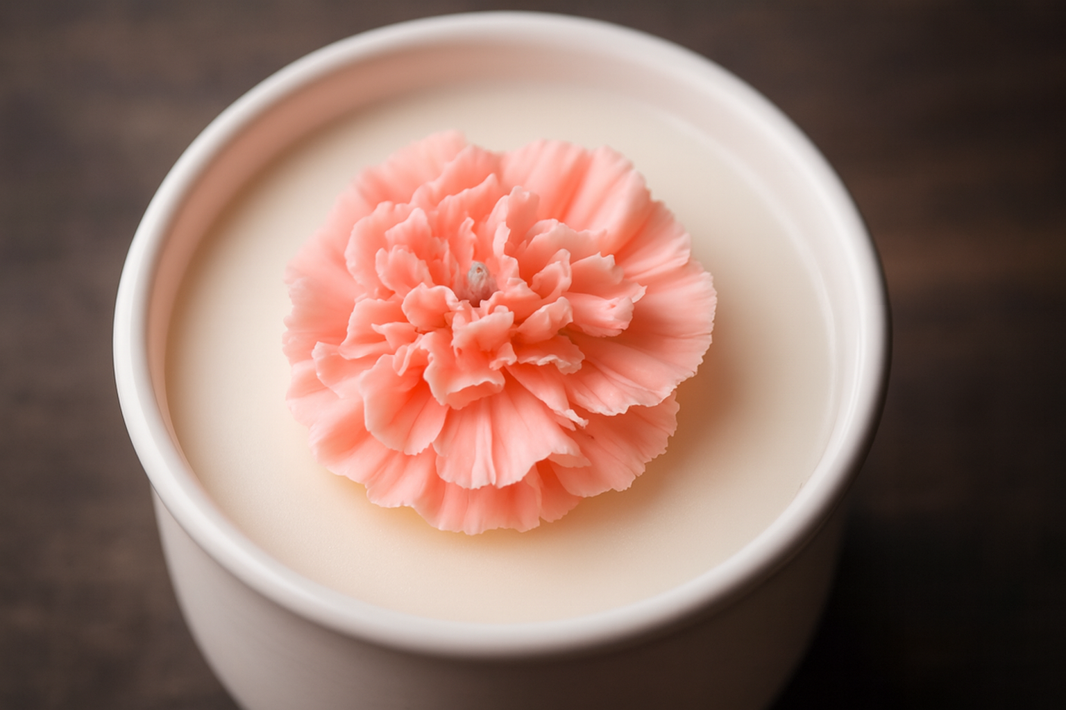 Handgemachte Sojawachs-Duftkerze „Cotton-Kirsche“ – 150 g im Nelken-Design in Porzellan